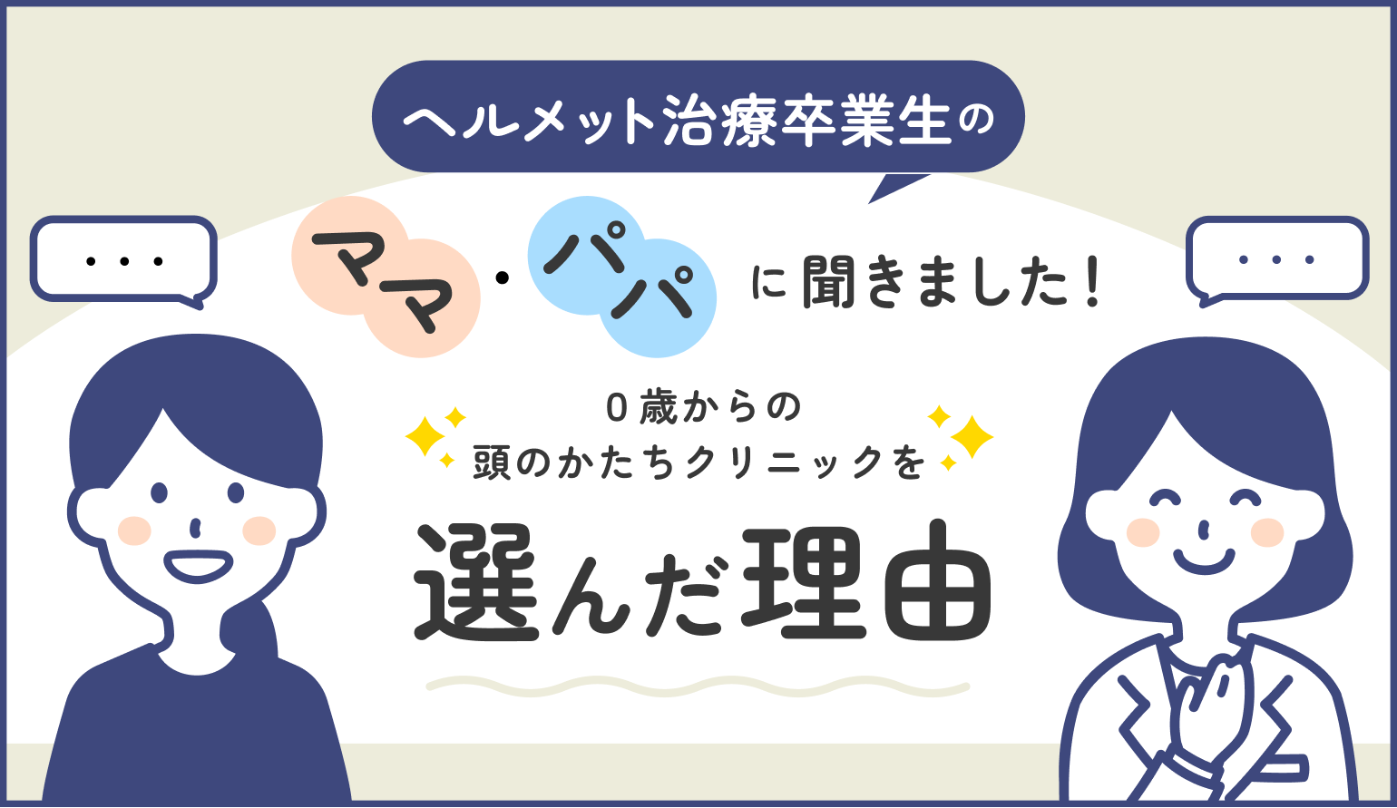 「0歳からの頭のかたちクリニック」でのヘルメット治療卒業生のママ・パパは、なぜ当院での治療を決意されたのか、当院に来てくださったのか、その決め手を聞いてみました。受診を検討中のママ・パパはぜひ参考にしてみてください。