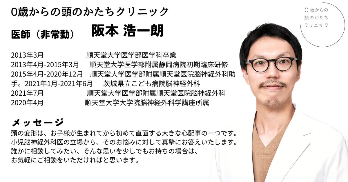 0歳からの頭のかたちクリニック表参道神宮前で月曜日に外来を担当している阪本です。